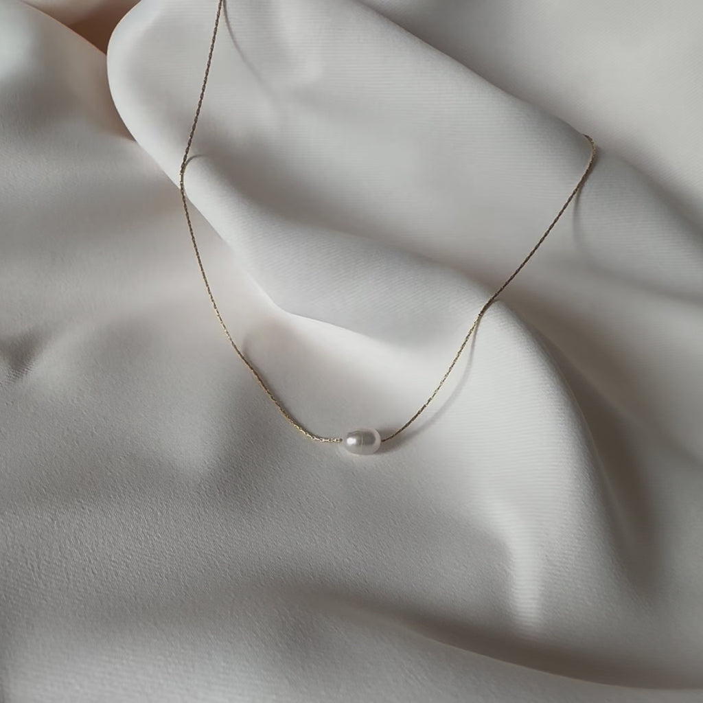 Single fresh water pearl sliding on our daintiest chain.